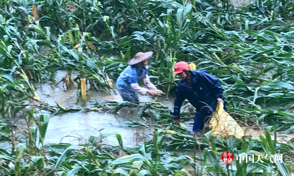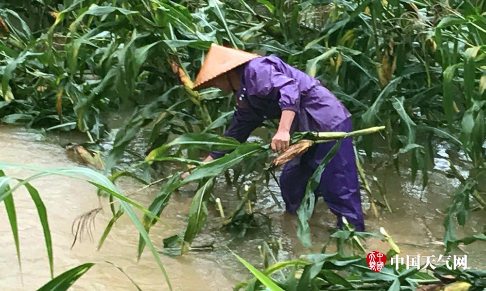 农友冒雨抢救玉米(摄影:丁灏)