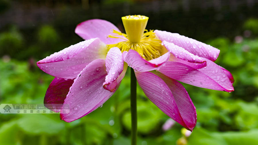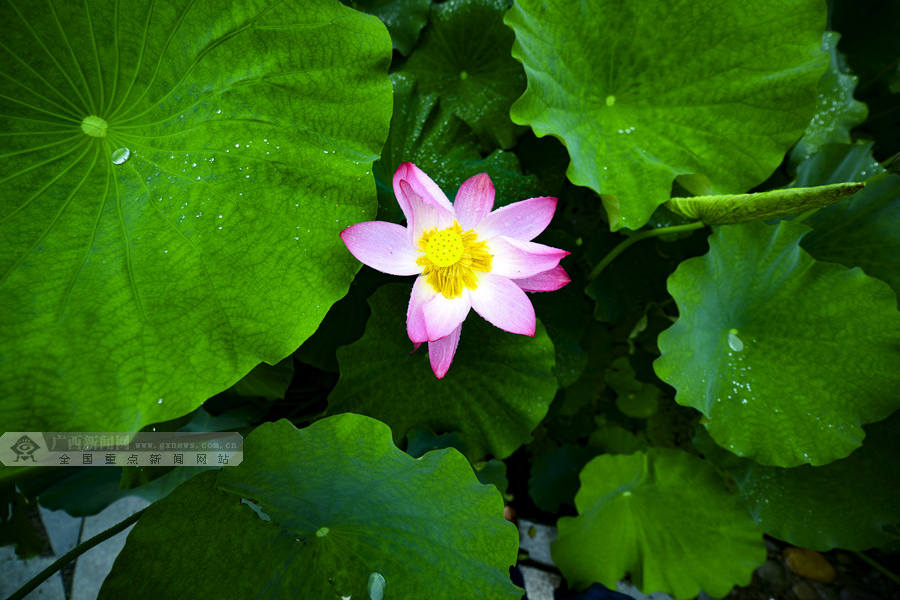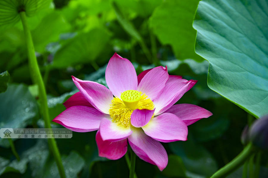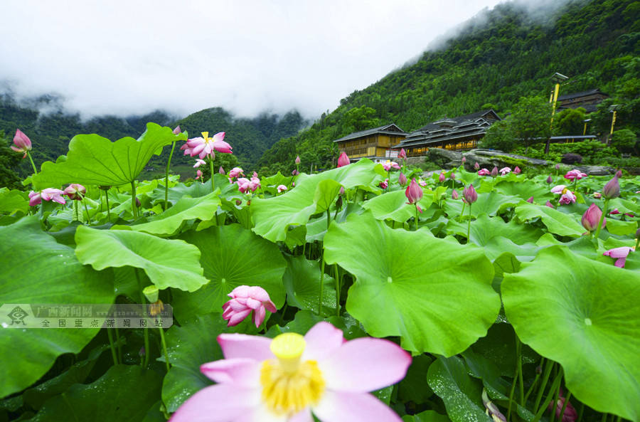连日来,桂林市龙胜各族自治县泗水乡周家村白面瑶寨荷塘里的荷花竞相绽放。(摄影:潘志祥)