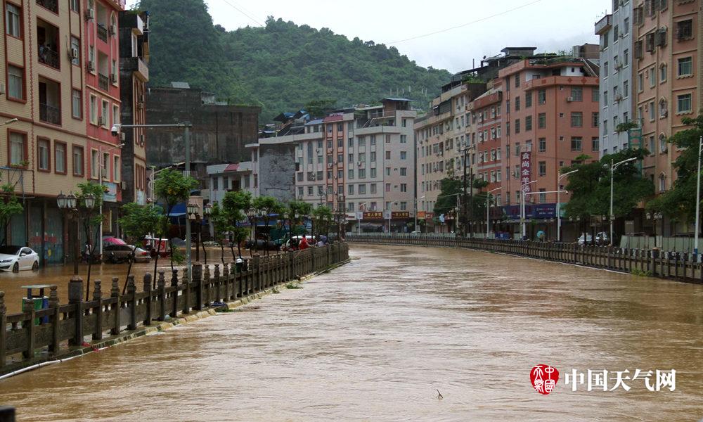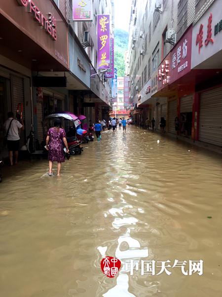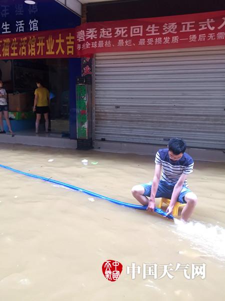 县城步行街变“水街”(摄影:罗诚)