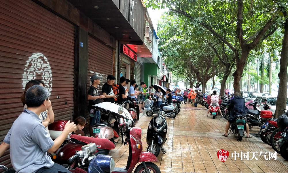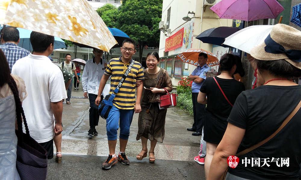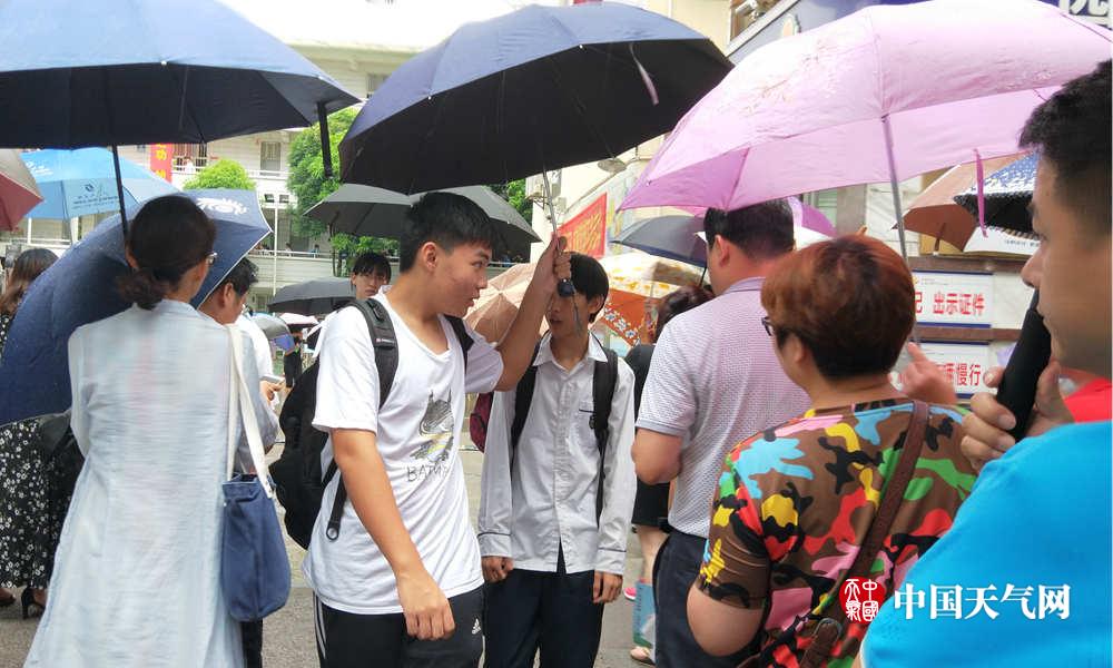 考场外冒雨等待的家长(摄影:赖雨薇)