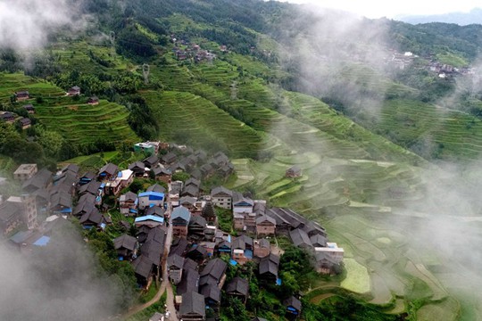 京里村村民在田间挽救因洪灾倒伏的水稻。(摄影:李枭)