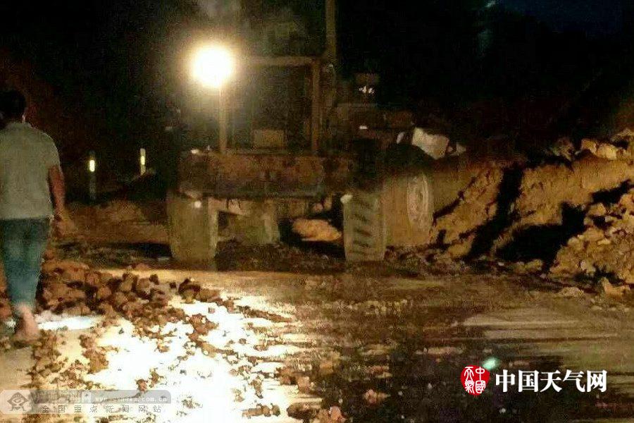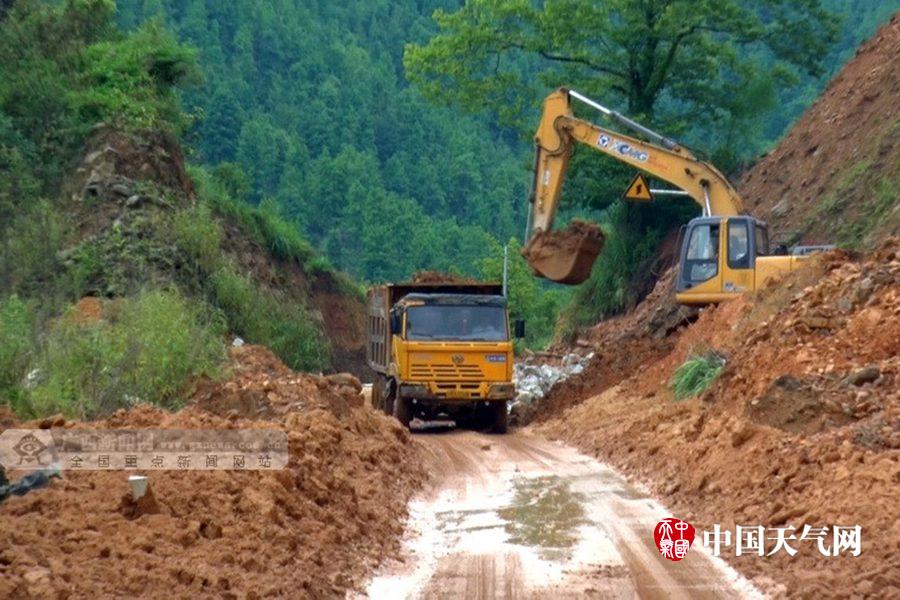 交通等部门出动施工机械昼夜抢修道路。(摄影:李枭)