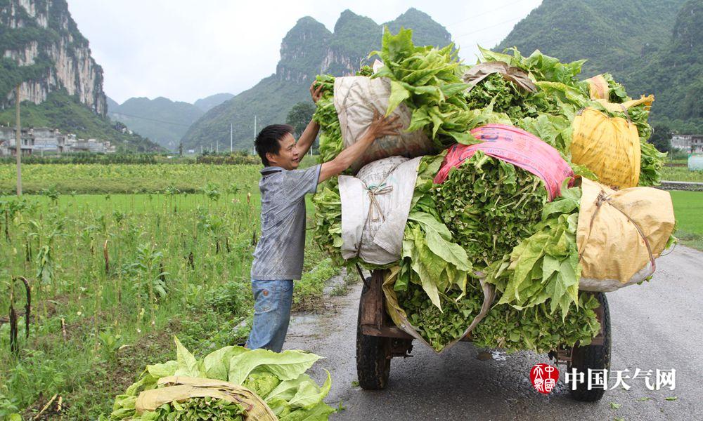 烟农装上了满满一车烟叶。(摄影:梁泽诚)