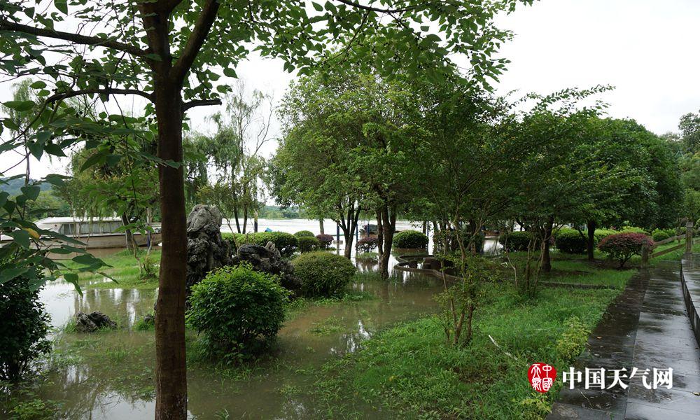 被洪水浸泡的河边公园。(摄影:华琦孜)