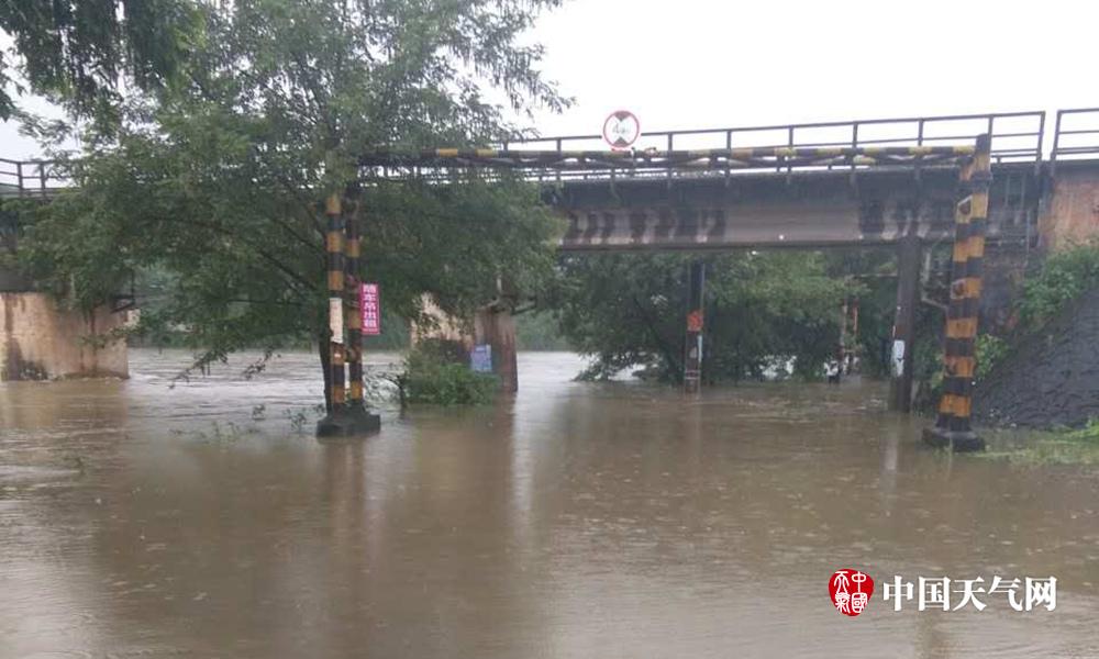 庙头镇一铁路桥下通道被水完全淹没。(摄影:华琦孜)