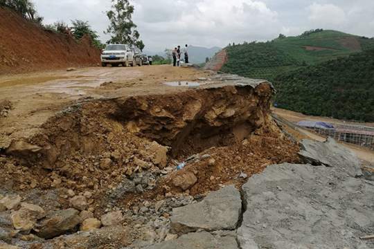 大将镇合理村村路塌方(摄影:覃宇辉)