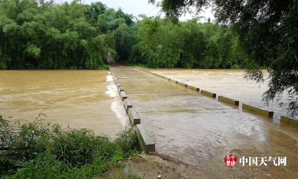 大将镇逢村桥梁被完全淹没(摄影:覃宇辉)