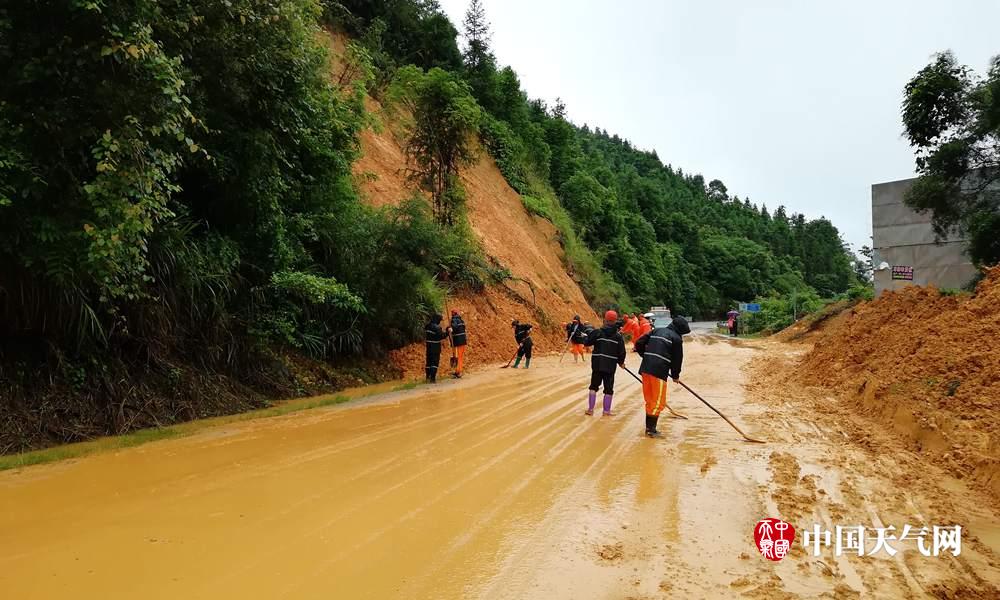 通往县城道路受阻,工人抢修维护(摄影:郑红)