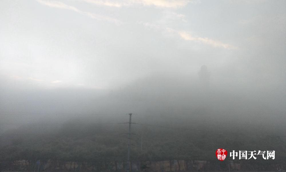 浓雾中的气象雷达塔楼(摄影:詹莹玉)