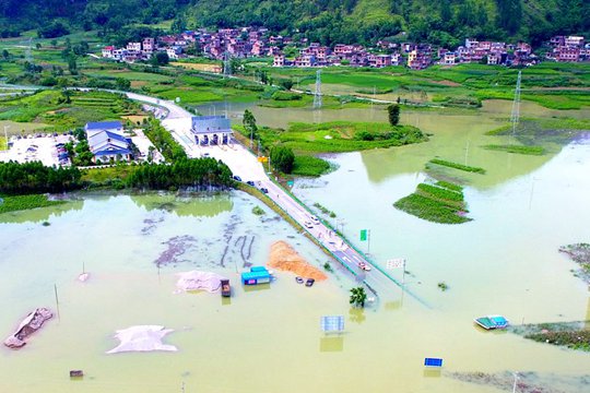 龙胜县321国道勒黄段交通中断(摄影:谭汶忠)