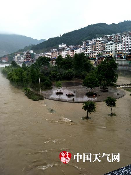 供市民休闲娱乐的“河心洲”水位逐渐上涨(摄影:谭汶忠)