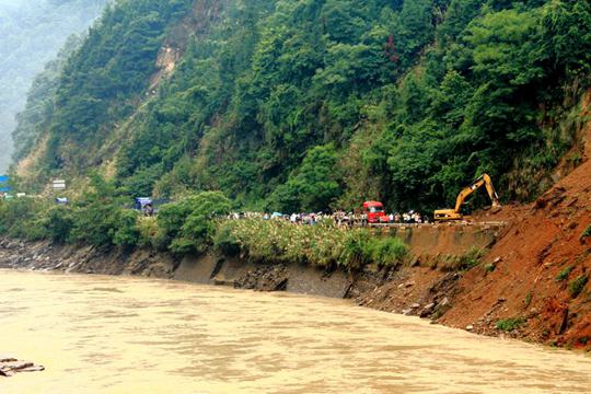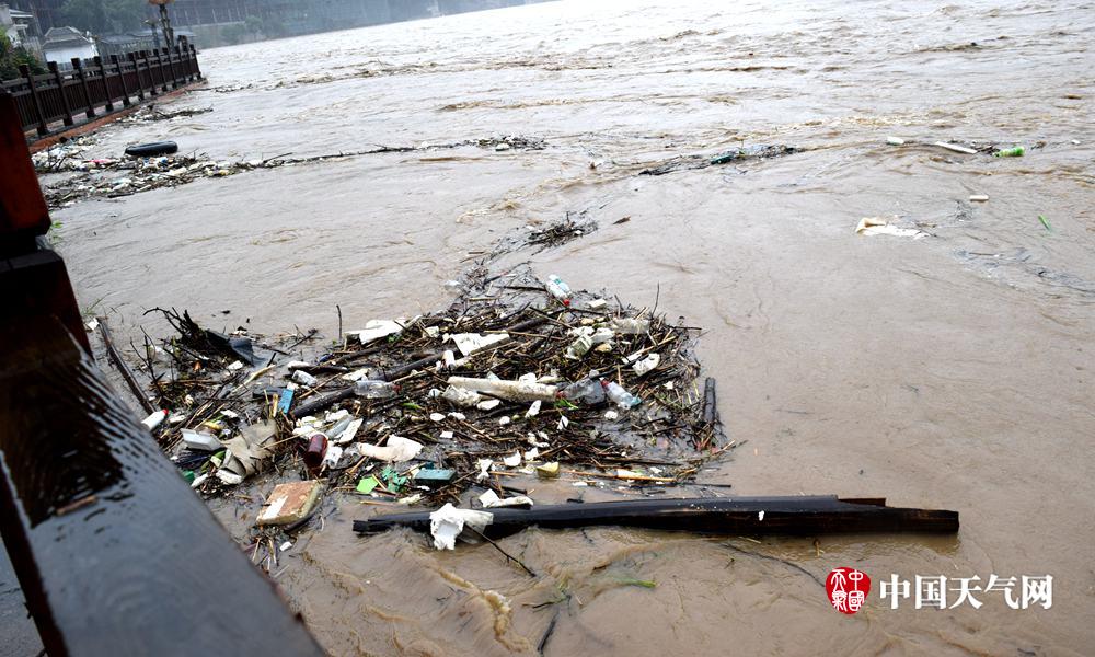 河心花园凉亭只剩“半个头顶”(摄影:谭琼)