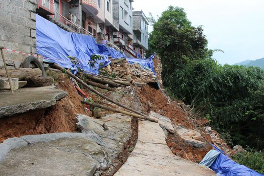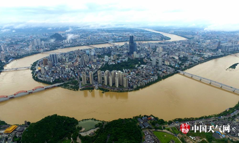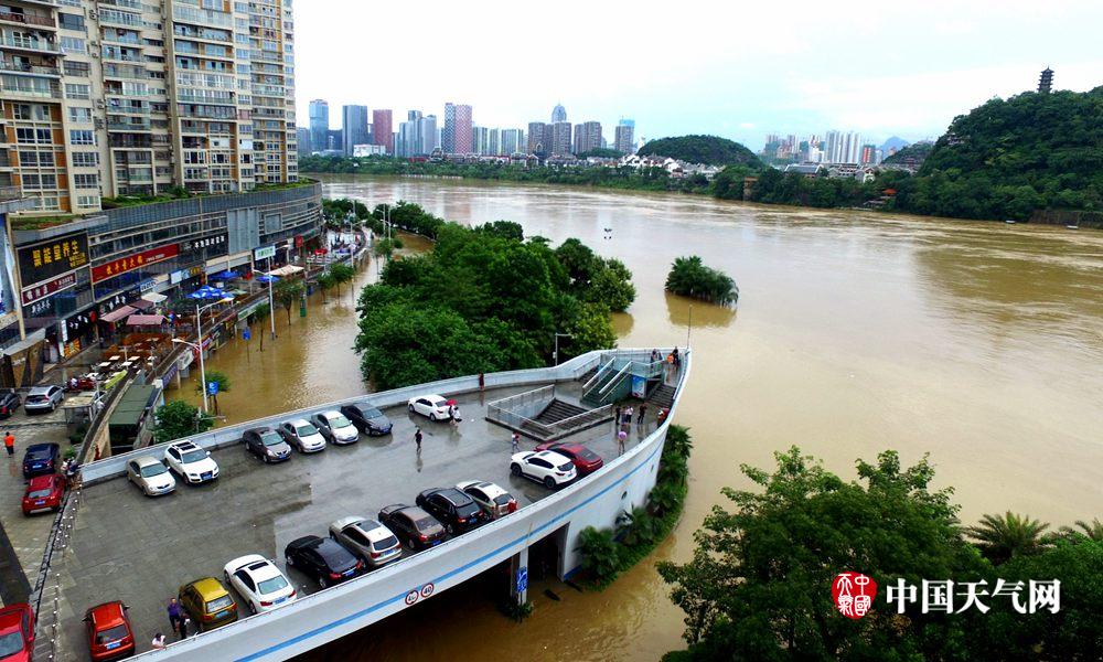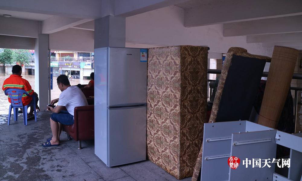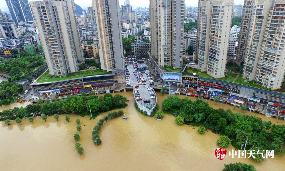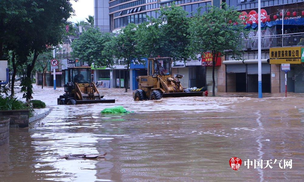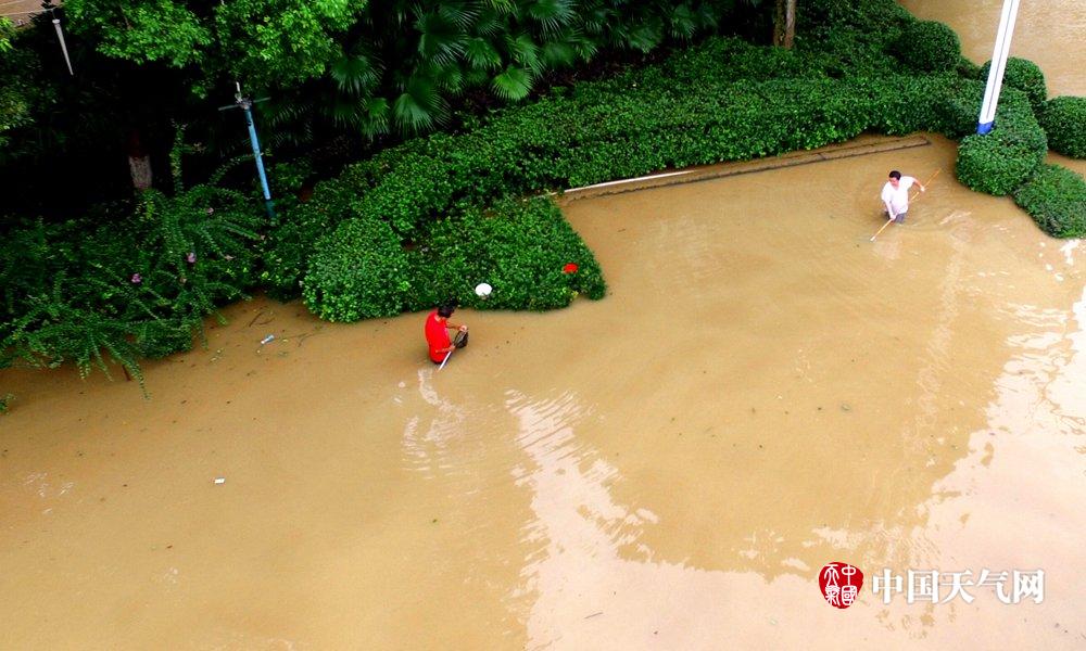在被浸泡的街道捞鱼的市民(摄影:吴青云)