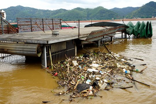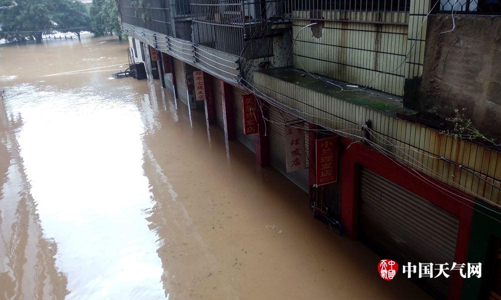 县城临河的农贸市场一楼被湍急的河水包围(摄影:伍钊)