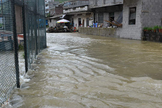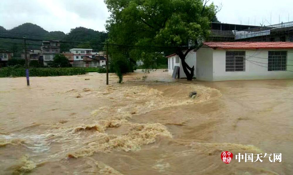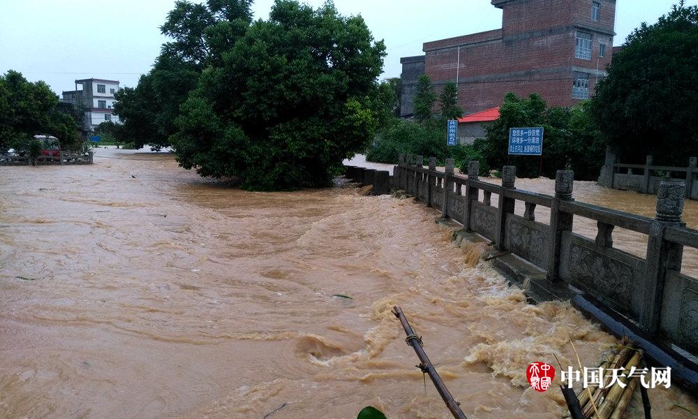 源头石龙村洪水淹没桥梁(摄影:张言福)