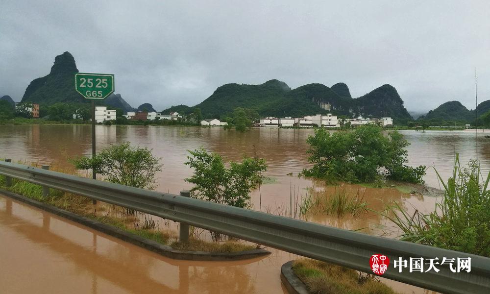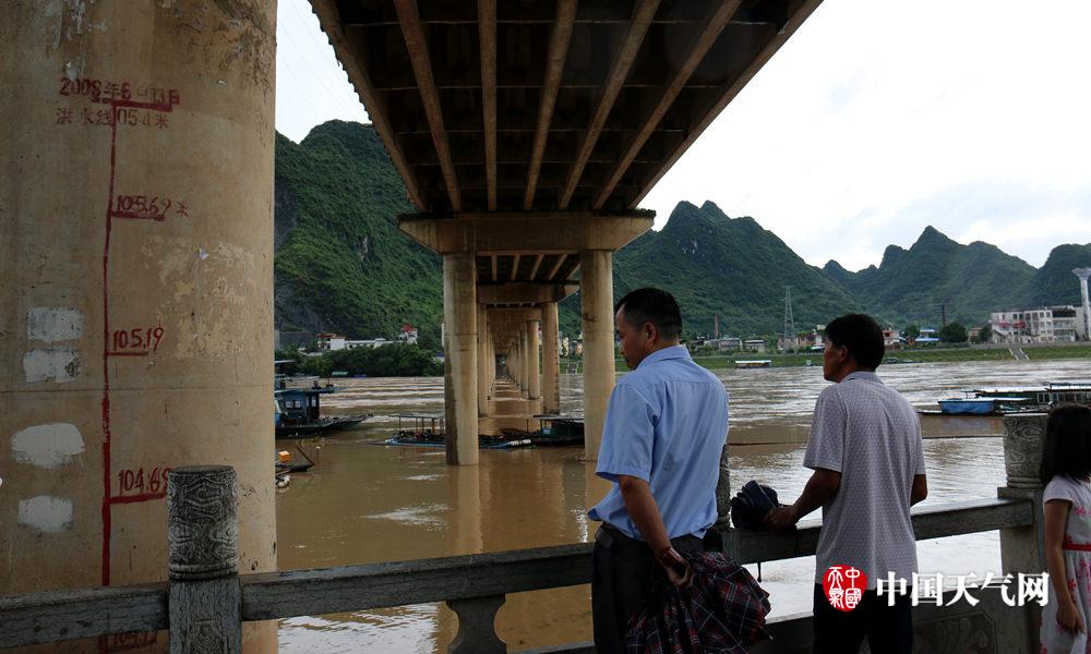 桂江水位上涨,截止到17时桂江水位100.89米,超警戒水位1.39米。(摄影:莫泳)