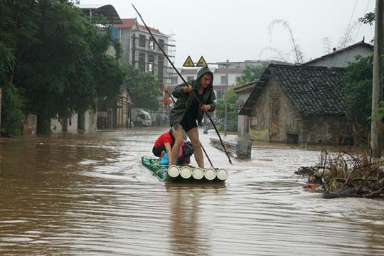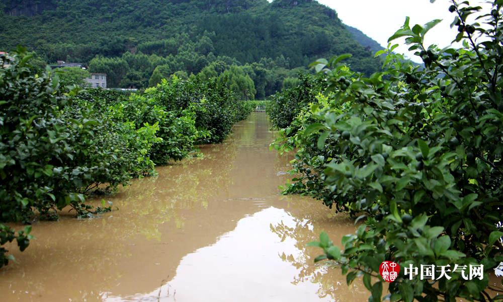 马坪镇通往柳州的二级省道,部分路段被洪水淹。(摄影:韦文彬)