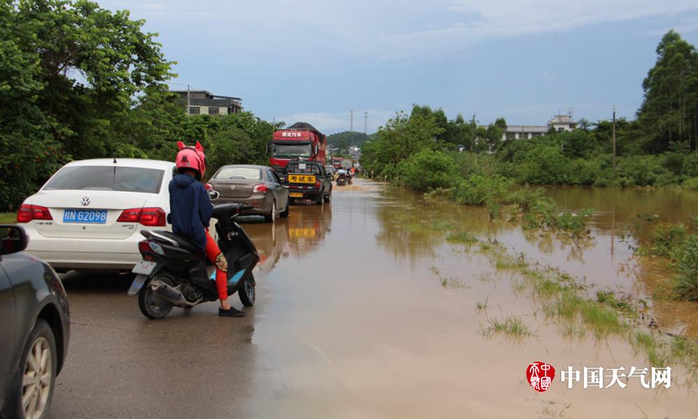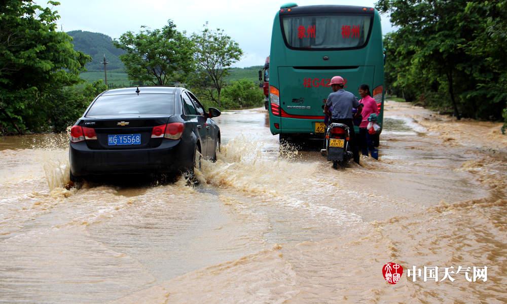 马坪镇通往柳州的二级路被淹(摄影:韦文彬)
