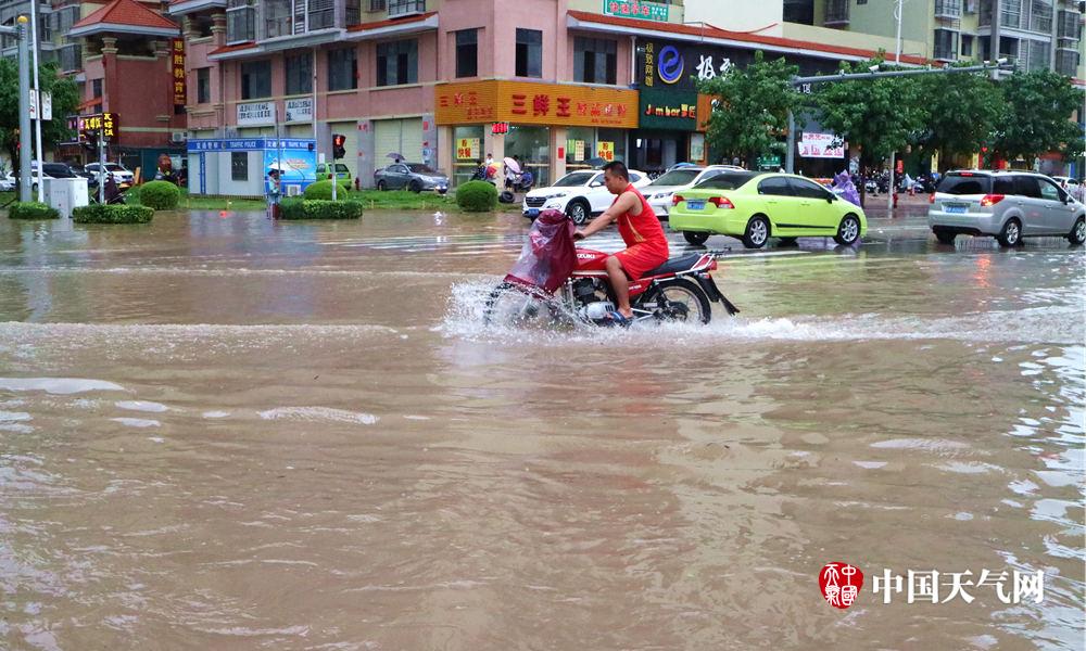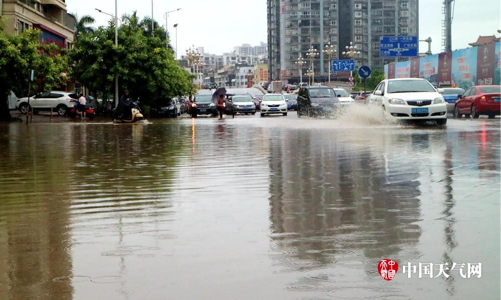 小车驶过积水处溅起水花(摄影:黄泰森)