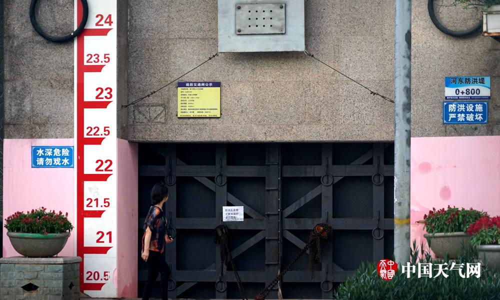 紧紧关闭的防洪堤闸门(摄影:梁妙芝)