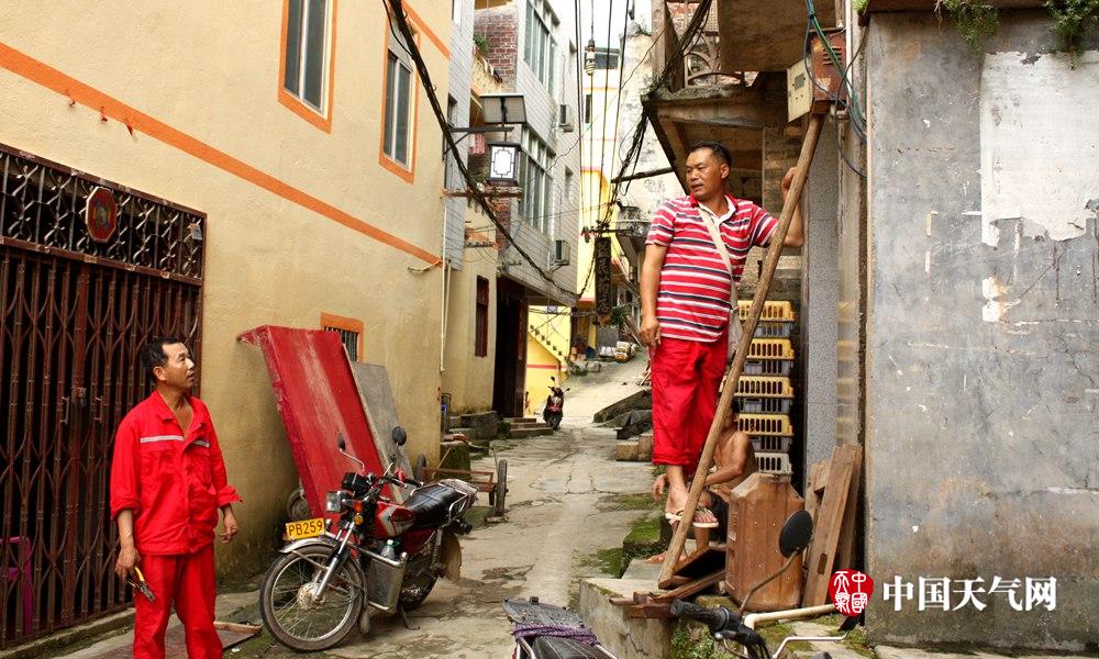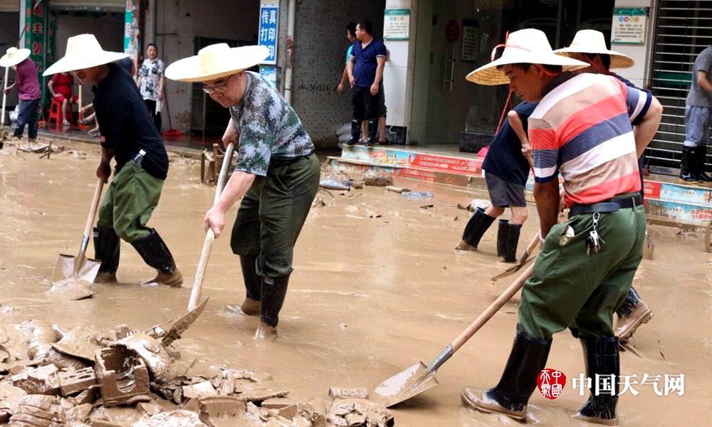 倒水镇居民合力清理淤泥(摄影:黄洪枝)