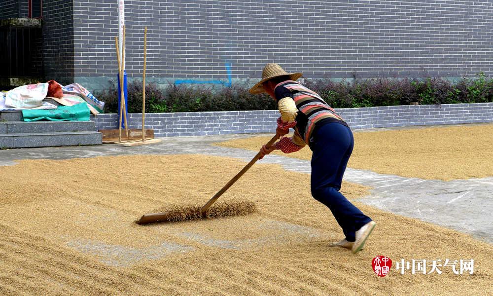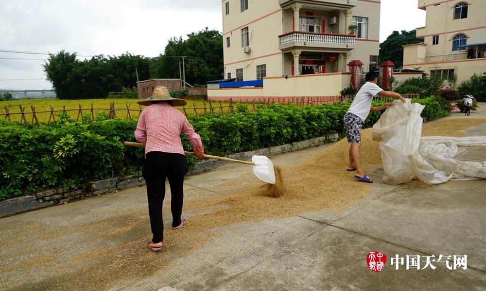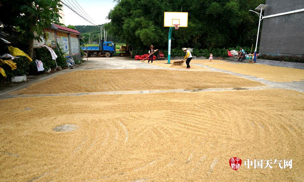 村里的空地都晾晒着洪水来前抢收的稻谷(摄影:梁妙芝)