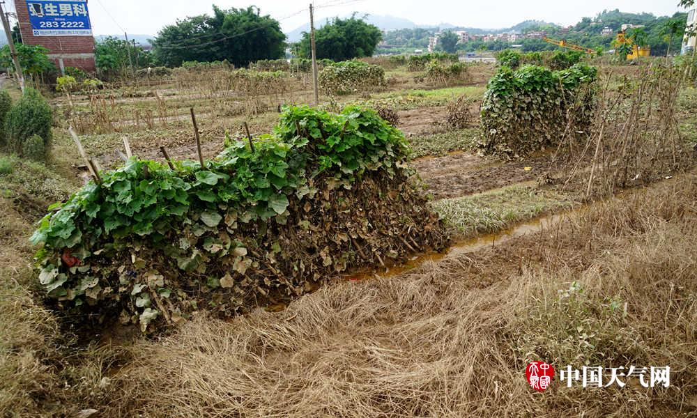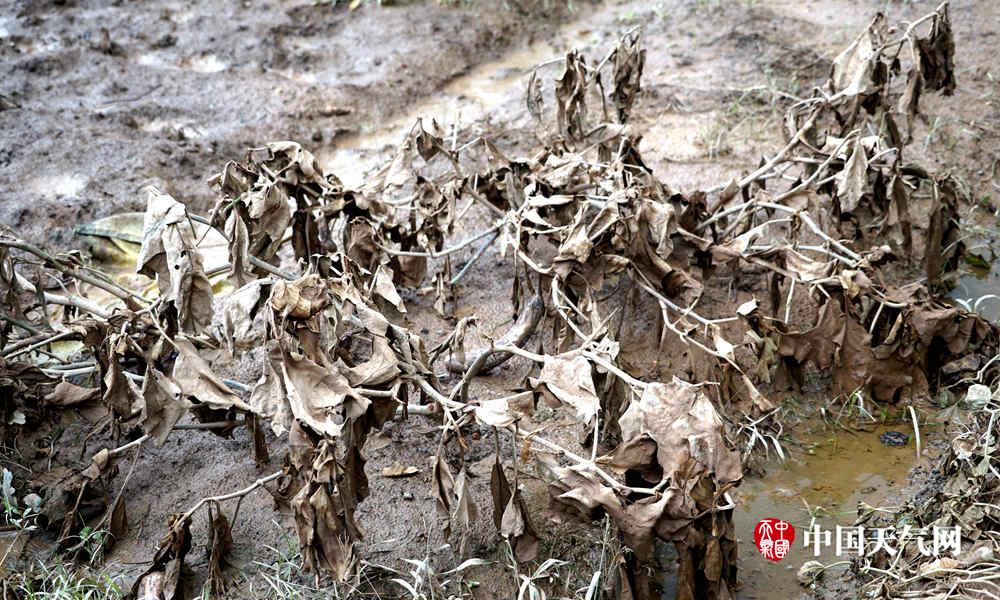 受洪水浸泡多日的茄瓜已枯萎(摄影:梁妙芝)