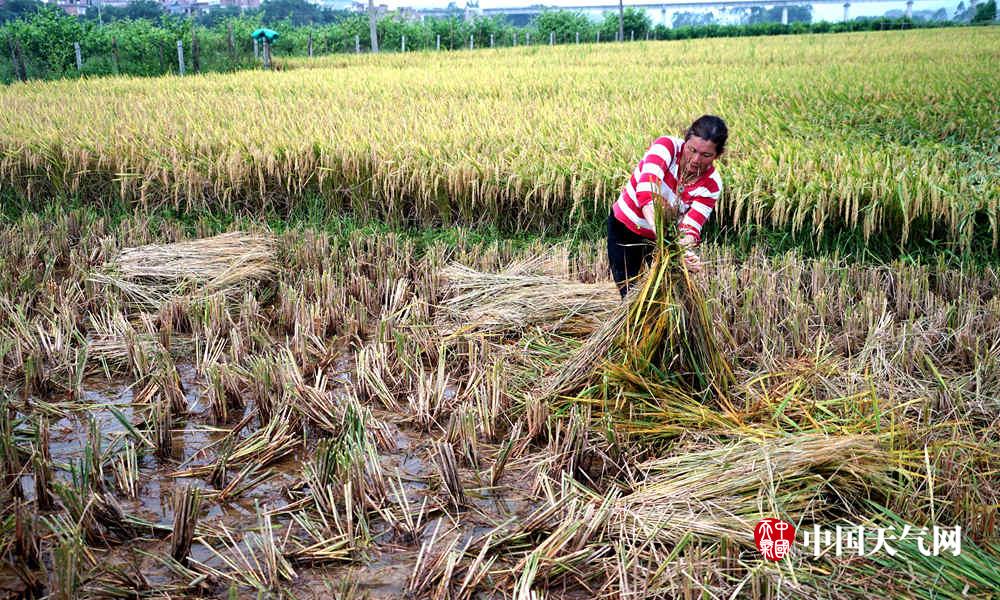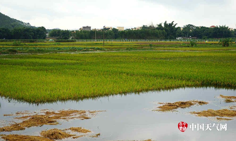 仍有部分可收稻谷浸在无法排出的洪水中(摄像:梁文希)