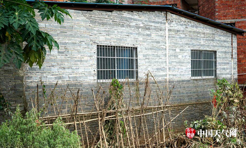 屋墙上的水印仍清晰记录着当时的洪水水位(摄影:梁妙芝)