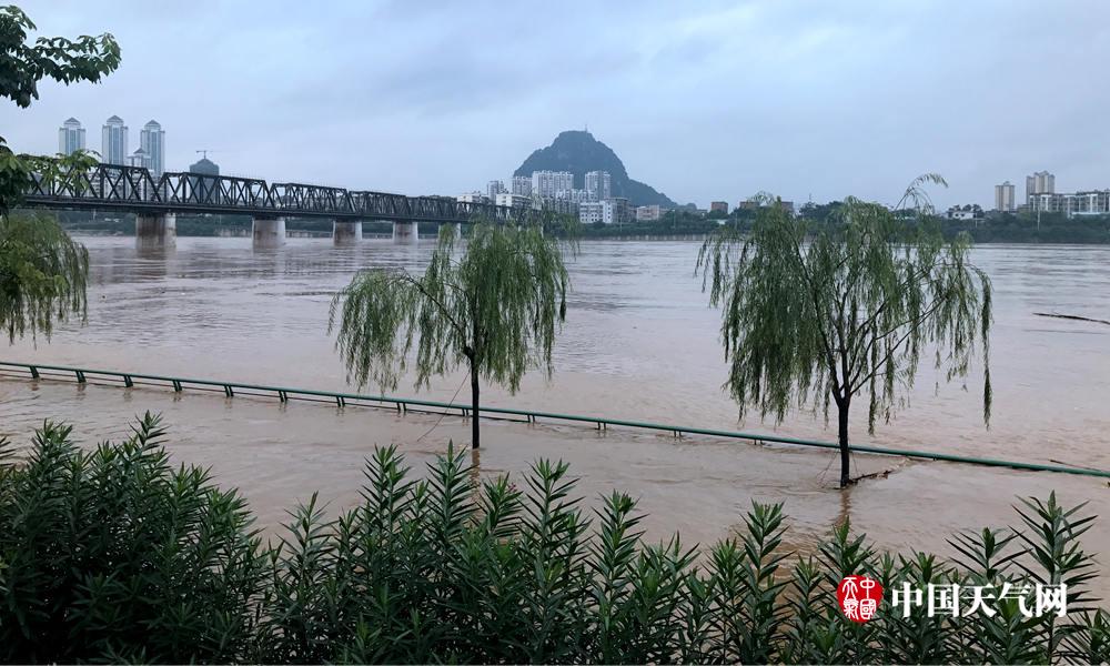 柳江水位逼近警戒线(摄影:刘俊芝)