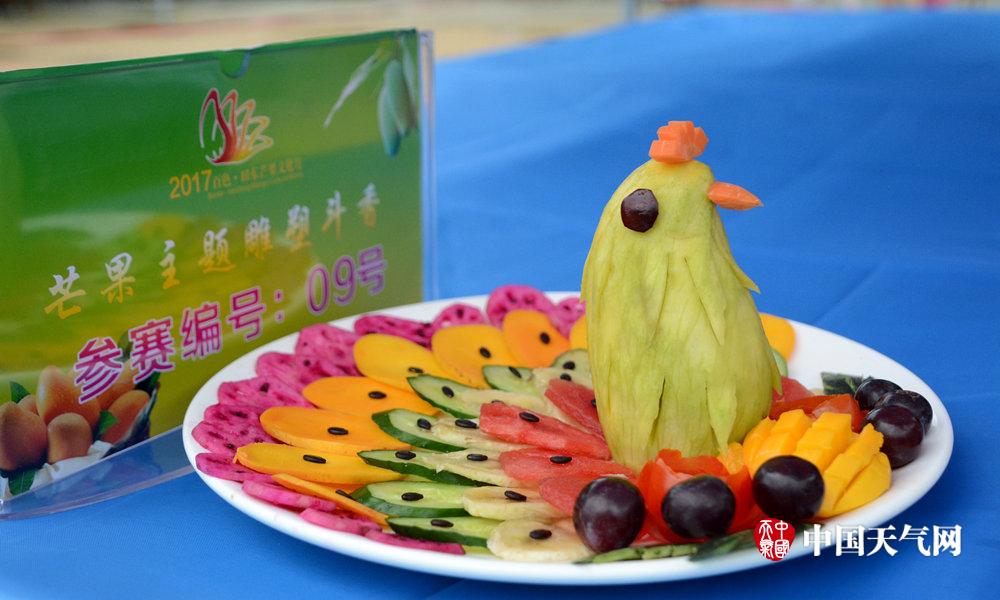 芒果雕塑的孔雀作品栩栩如生(摄影:戴雨菡)