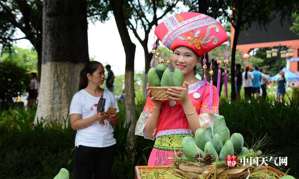 模特向游客展示桂七芒(摄影:戴雨菡)