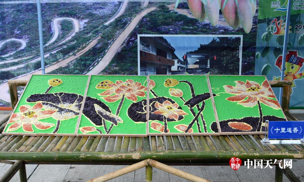 五色糯米制成的《十里莲香》装饰画(摄影:戴雨菡)