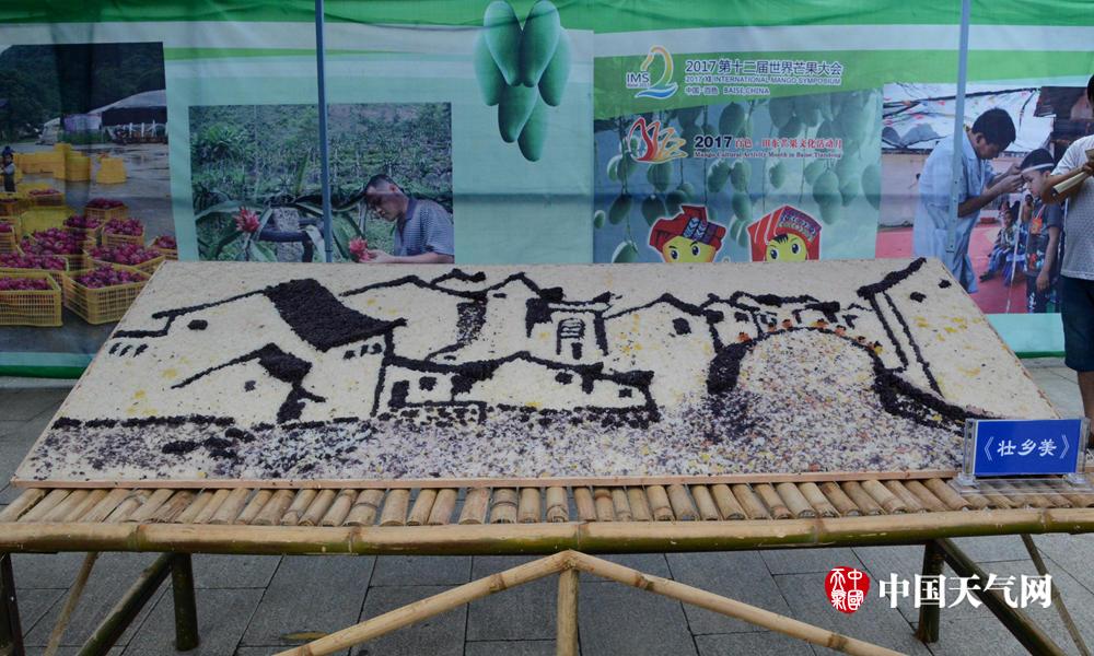 五色糯米制成的《壮乡美》装饰画(摄影:戴雨菡)