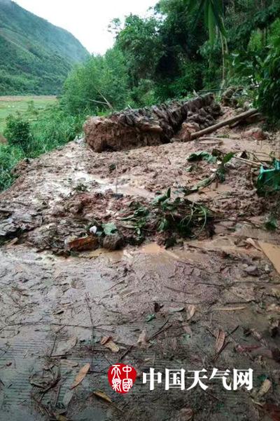 11日,十万山乡四方岭村拱门组房屋旁边道路塌方(摄影:黄海军)