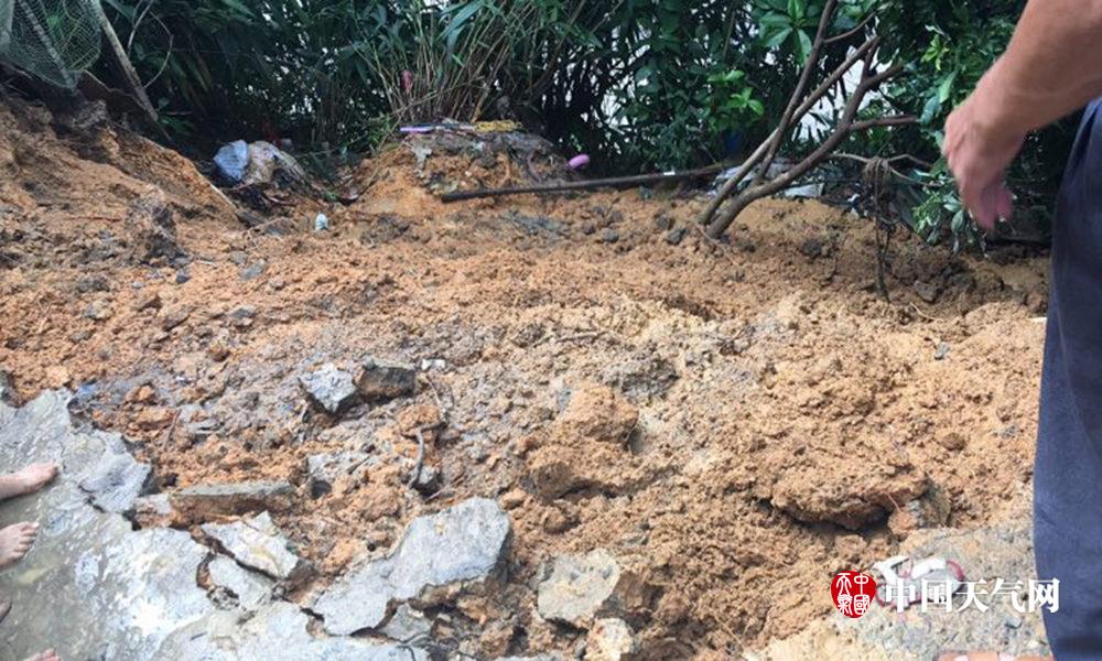 12日,茅岭村枫木坪民房屋门前滑坡(摄影:陈国文)