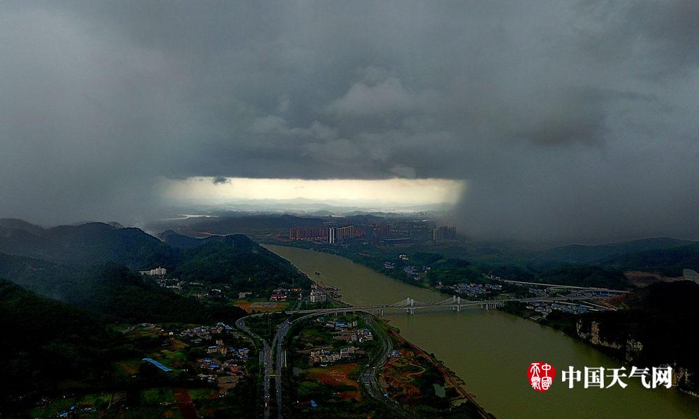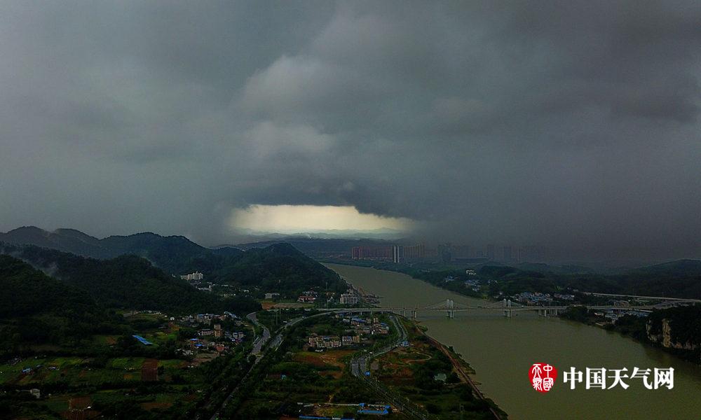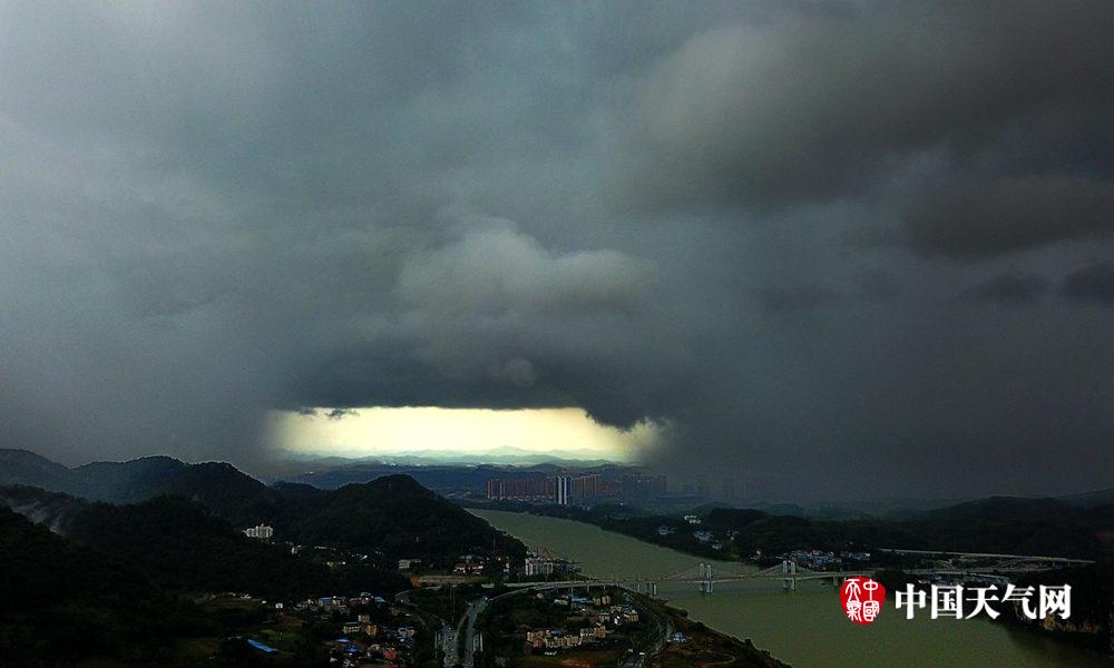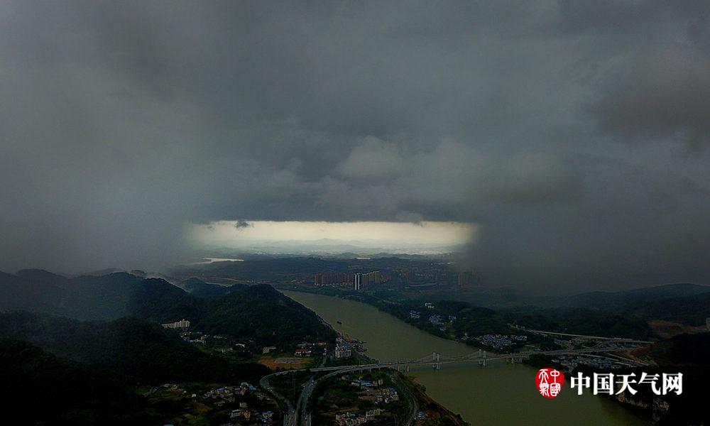 柳州天空惊现云彩奇观“雨帘洞”(摄影:黎寒池)