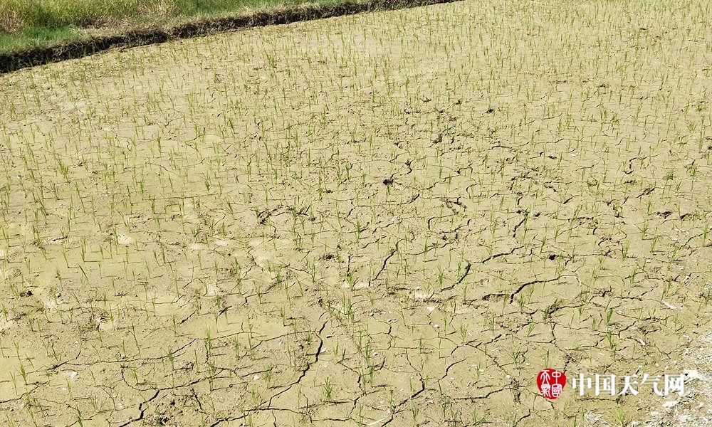 防城区那梭镇那夏村已抛秧田块,受高温影响已开裂(摄影:廖汝昌)