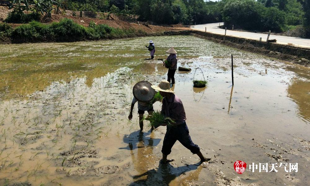 烈日下农友抢种晚稻以免误季节(摄影:廖汝昌)
