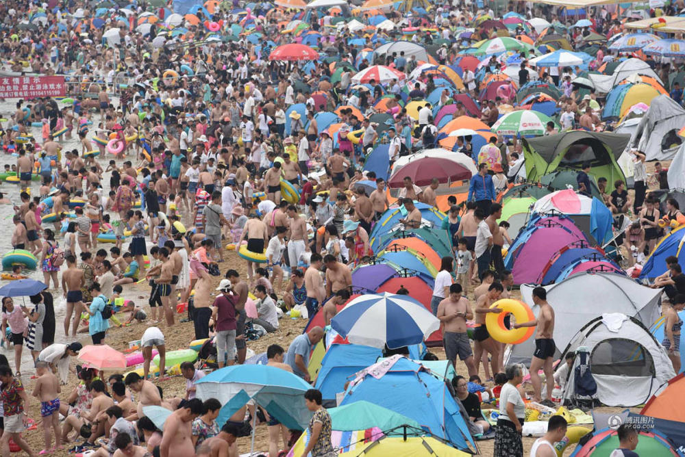一眼望去只看到大批游客却未见沙滩。