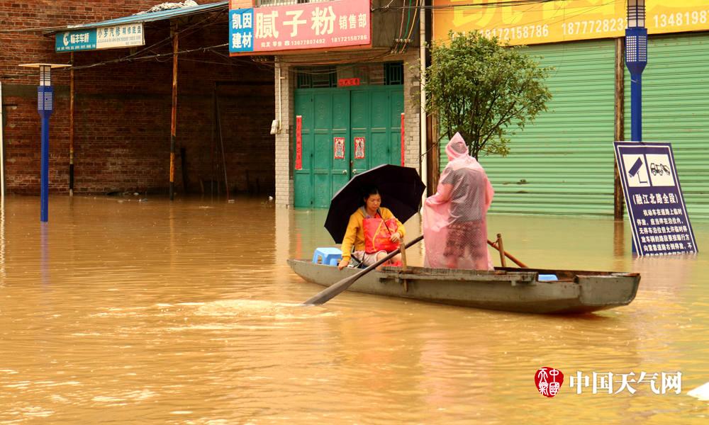 14日,被洪水淹没的融安乡镇(摄影:廖婷婷)