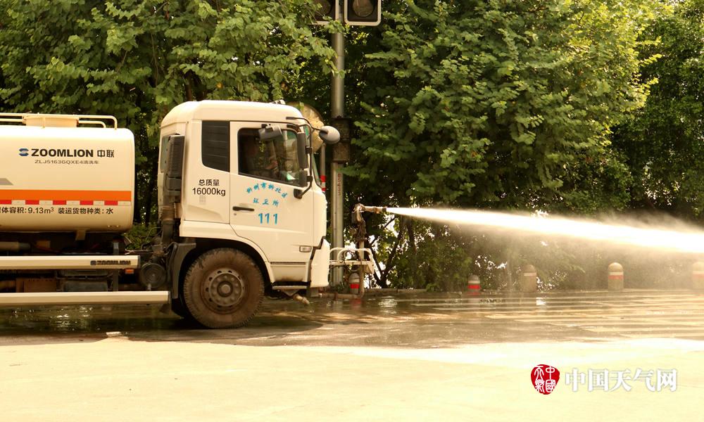 16日早晨,柳州环卫所水车正在清淤(摄影:廖婷婷)