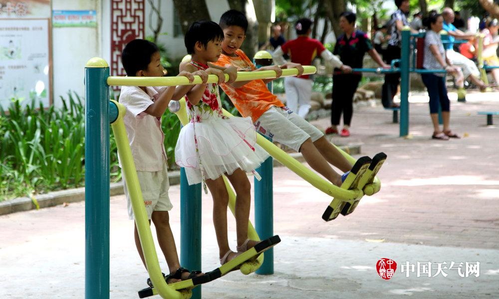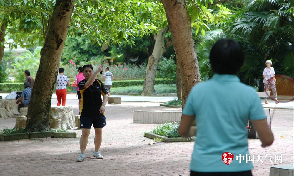 树荫下打羽毛球避开烈日(摄影:卢威旭)