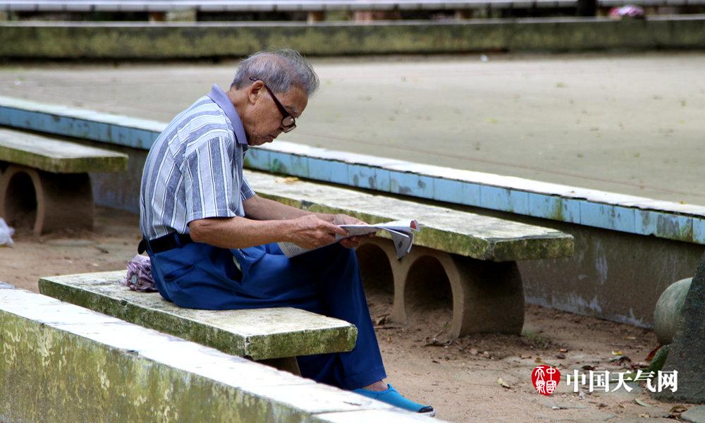 老人在树荫下悠闲看报(摄影:卢威旭)