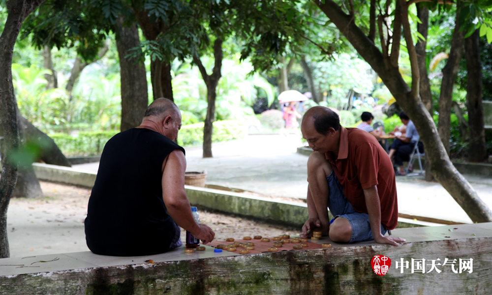 两位老人在树荫下安静地下棋(摄影:卢威旭)