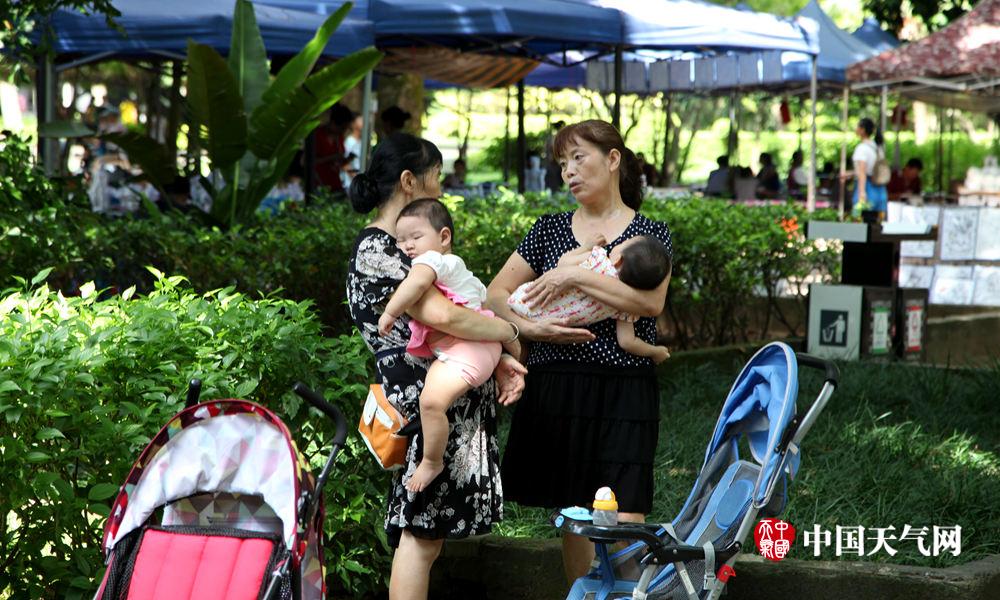 妈妈们在阴凉处交流育儿经验(摄影:卢威旭)