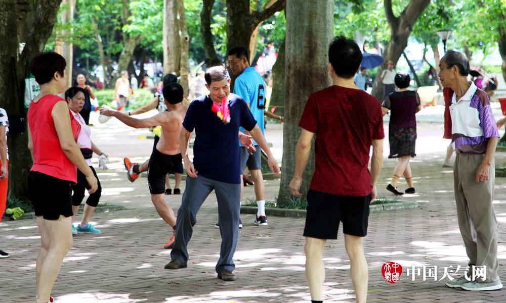 市民踢毽子你来我往汗流浃背(摄影:卢威旭)