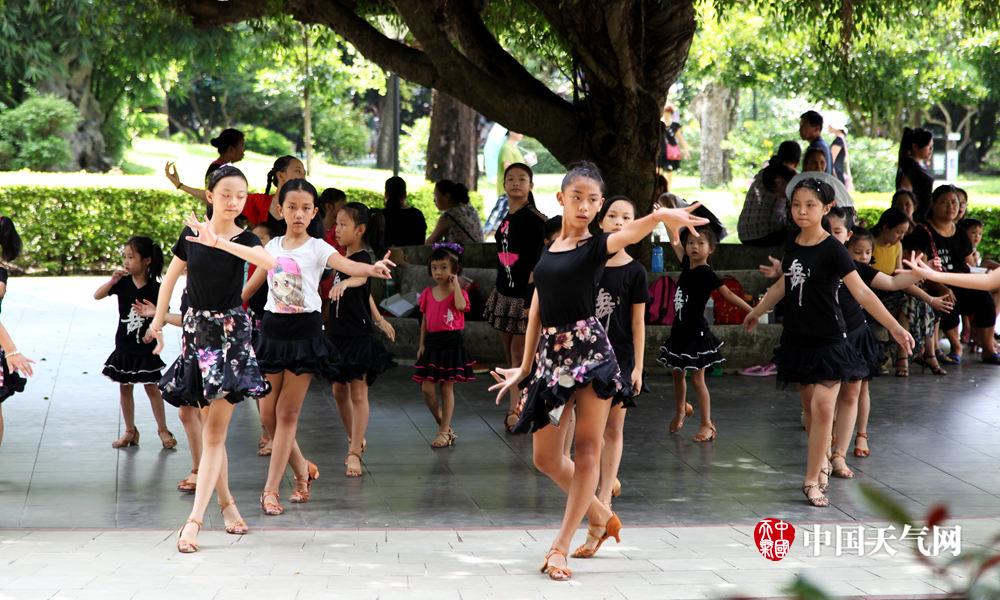 小朋友们在大榕树下学习跳舞(摄影:卢威旭)