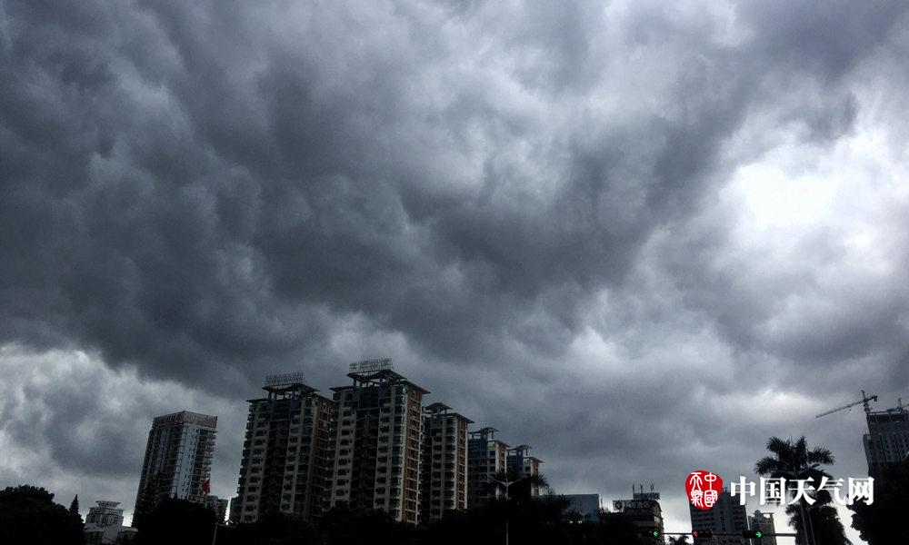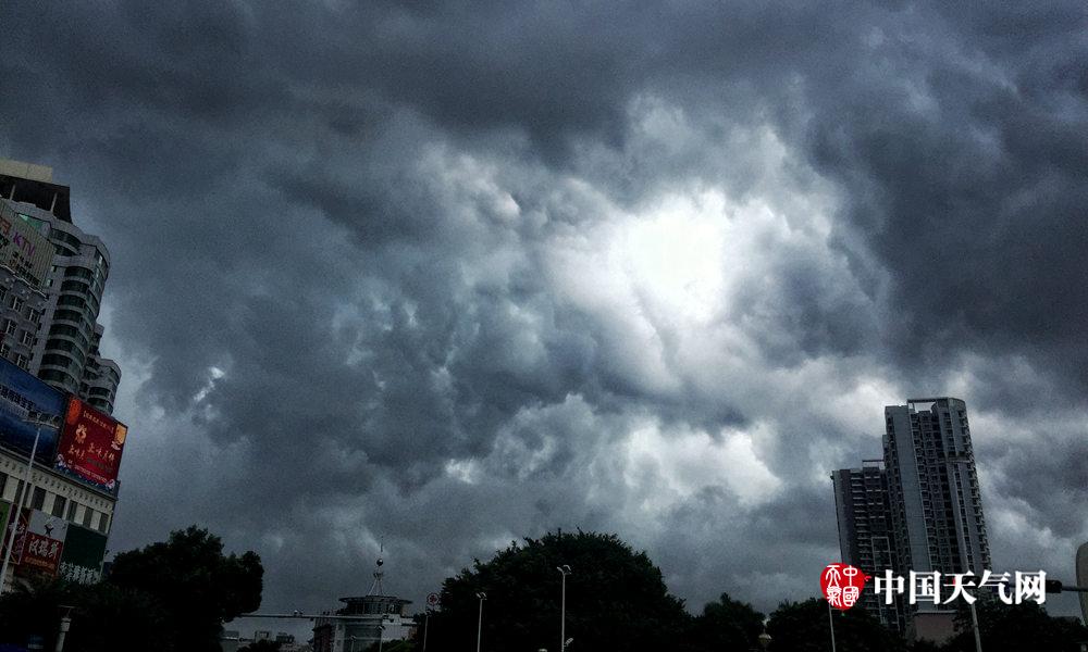 乌云滚滚而来,逐渐覆盖北海城区上空(摄影:卢威旭)