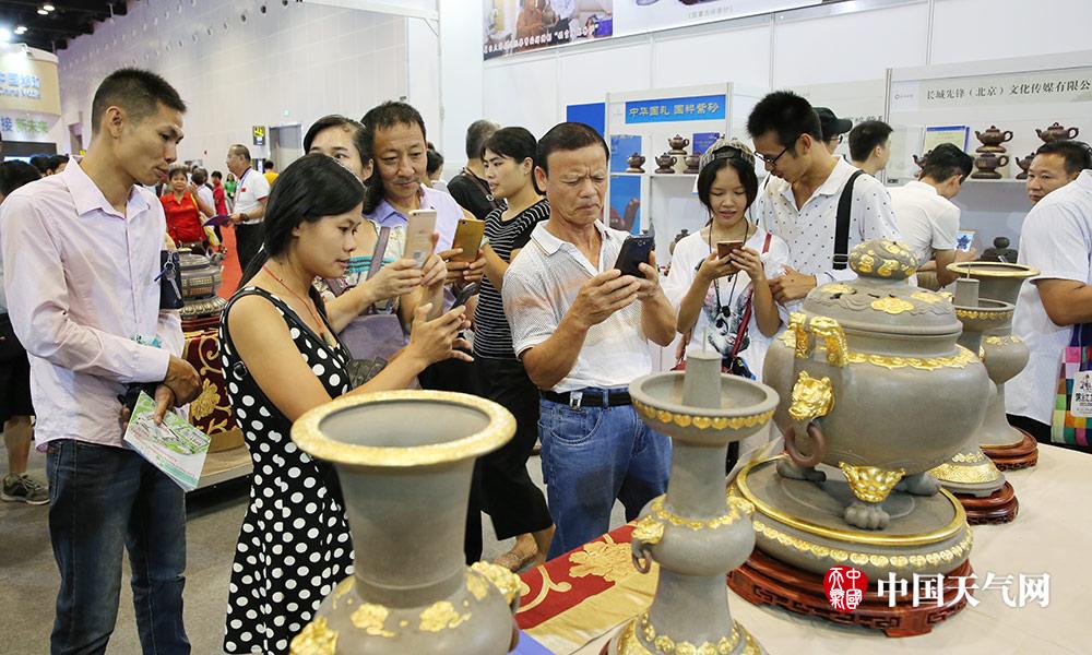 精美的紫砂壶吸引许多市民观赏拍照(摄影:刘英轶)